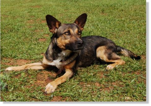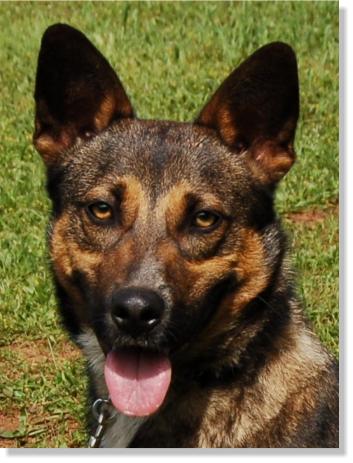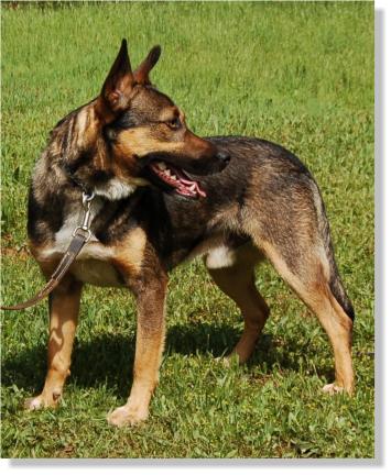 Shorty is approximately 9 months old, weighs 38 pounds and is 18 inches tall but don't let his size full you. This little dog can move!! Our full size shepherds cannot keep up with him.