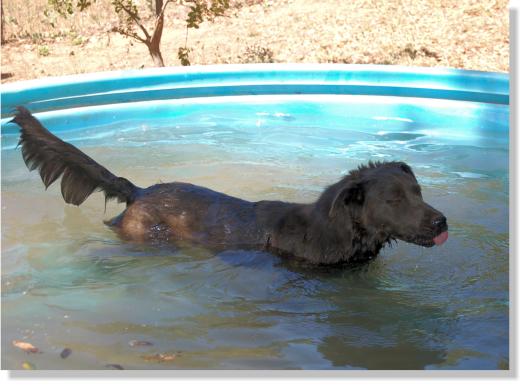 She is a real character! She loves to play in the water, whether it is in a pool or coming out of a hose, she will play as long as you are willing to play with her. Alli gets along well with other dogs and seems to be good with cats too. |