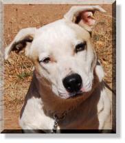 Bonnie came from the kind folks at Calaveras Humane Society. This little girl was picked up as a stray and it is obvious that she had recently had a litter of puppies. Bonnie looks like she is a cross between a Lab and a Boxer and is about 3 years old.