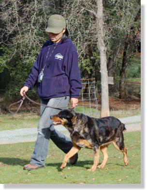 She will even work reliably off lead! She has a perfect heel with an auto sit when her handler stops. She will sit and down from the side and front, comes when called and knows both her finish right and left. She even knows how to perform the in motion sit and down.