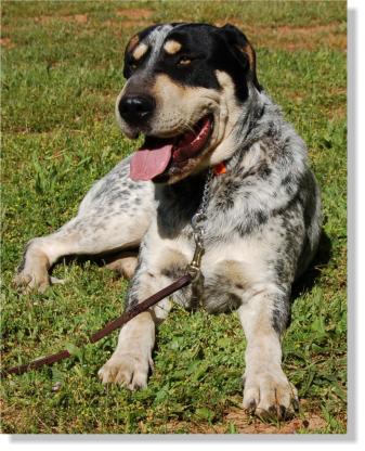 Blue gets along with all of the dogs here at the ranch and just loves to come out and practice his obedience. |