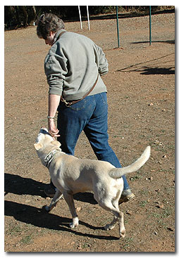 dogs, needs a job. When he's working by heeling or learning sit he