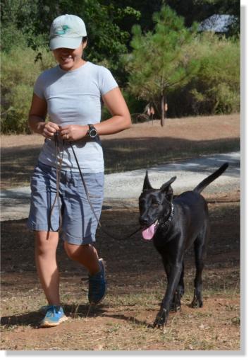 Bruce has mastered a very nice heel at your left side, auto sit when you stop, down from the heel position and from the front. He has very nice stays and comes when called. All of this obedience is on lead at this time but it should not take him long to become off lead reliable!