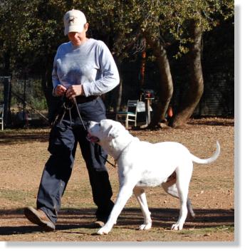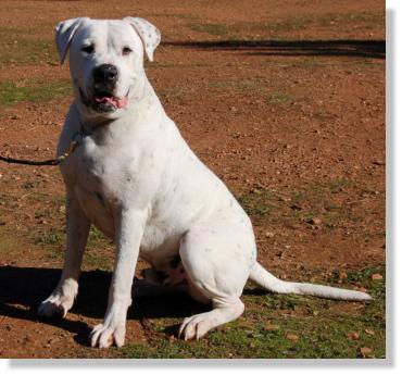 The adult Dogo Argentino will sometimes respond