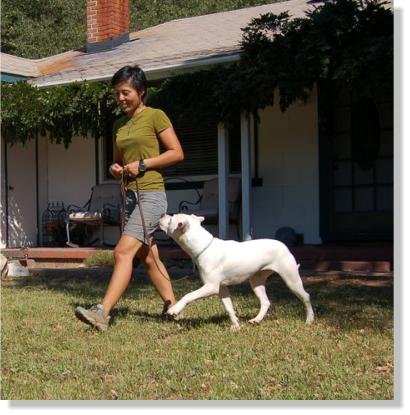 She was her typical pushy self trying to slobber all over the cat when Miss T.C. slapped her in the face, causing Chewy to run and hid behind the first person she came to. Big brave Bulldog!! Chewy is doing great with her obedience lessons and has already learned all of the basic commands such as heel, auto sit, down, stay and come.