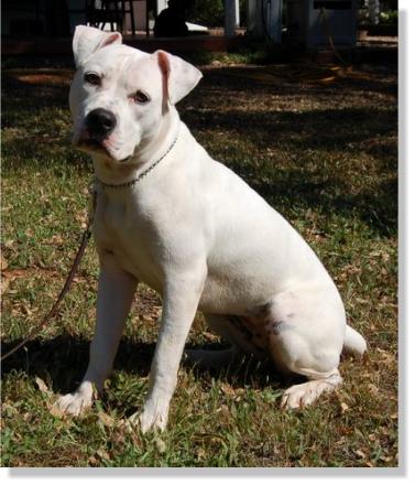 Kazumi, our American Bulldog expert here at the ranch has fallen in love with this great pup and says if you a fan of the "Bully " breeds, this girl is for you. She is a perfect example of what an American Bulldog is supposed to be.