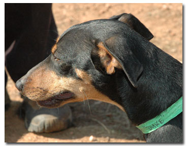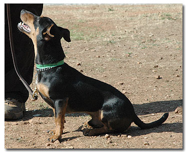 knows how to heel, walk on a loose lead, wait at doorways and sit