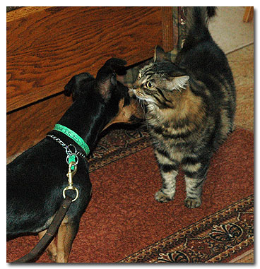 And he even likes cats! Here Duke meets our residence lucky cat,
