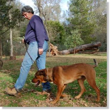 Harley is demonstrating a very nice off lead heel while styling