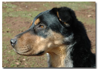 between an Australian Shepherd, Rottweiler and maybe Shar-Pei,
