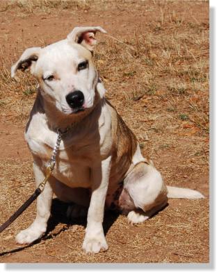 She is about a year old and is a very social dog. We named her Mabel because of her Mabeline eyes. She gets along great with all of the dogs here at the ranch, although she can be a little pushy with the dogs that she plays with.