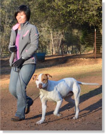 This is Rex's very first obedience lesson and just look at how nicely he is heeling with his trainer Kazumi! Rex still will try to jump on any new people that he meats but once he knows they know all of the rules then so does he! |