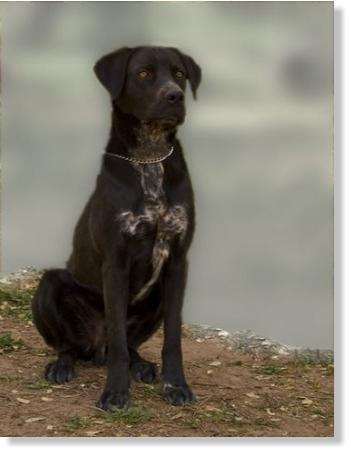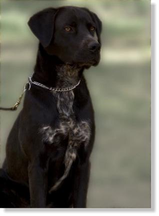 Rico is approximately 1 1/2 to 2 years old and our guess is he is a Black Lab/German Shorthair cross. He came to us from the folks at the Amador Care and Control. Rico was very thin when he came to us and was very fearful when he was in his kennel. Since he has been with us, he has had room to run and play and love's having a roommate. Rico will be a good watchdog as he will let us know if anyone is coming onto the ranch.