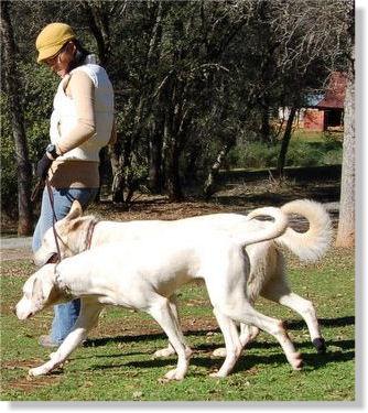 Look at their feet, heads and tails in the picture where they are heeling in brace. Not bad for 1 weeks worth of training!