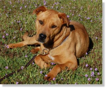 She is very sweet and extremely smart, although a little on the stubborn side. We think she may have some Shar-pei and maybe a little Lab and maybe a little ?????????! We think she is about 1+ year old.