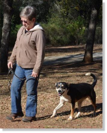In less than a week's time, all of Roxi's fearful behavior has gone away. She has turned into a real snug bug and has now learned to heel, sit, down, stay and come.