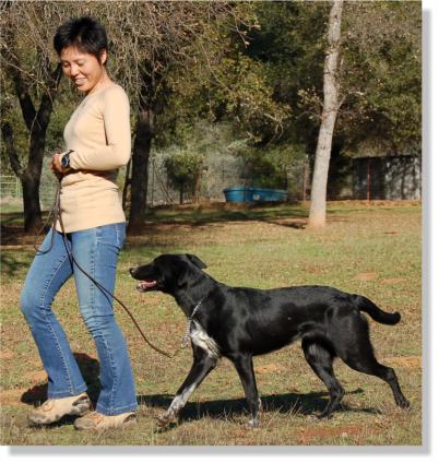 In the short time that she has been here she has already mastered a very nice heel, auto sit, down, stay and come.