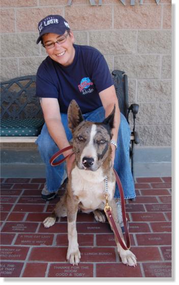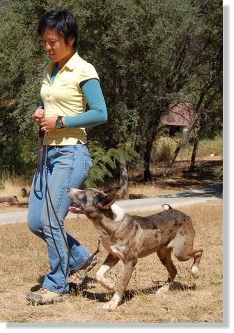 She loves all of the dogs here at the ranch. Sky is coming along nicely with all of her obedience training and has already mastered the heel, auto sit (crooked), down at the side and from the front, stay in the sit and down, come to a front sit.