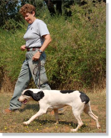 She has a beautiful home on a golf course (poor thing) a very nice fenced yard and two kids to play with. The father of the family enjoys pheasant hunting so Swiffer can put her incredible hunting drives to work as well.