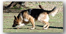 This is a specialty program by Twin Cedar K9. Margaret has been working with tracking and trailing dogs since 1992. She began by training her husband Brain’s Sheriff’s K9s Duff and Luka. She has trained under Sandy Bryson, author of Police Dog Tactics and Search Dog Training and most recently, has attended trailing dog seminars with Jeff Schettler’s Tactical Tracker Teams. www.tacticaltrackerteams.com We have access to our 85 acres here at Twin Cedar K9 as well as several local ranches to provide you with exceptional training grounds for you and your dog to learn this fun and rewarding field. We can help prepare you for tracking and article locating for the AKC TD, TDX and VST tracking test. Our trailing training will prepare you for search and rescue and/or law enforcement man trailing. Puppies as young as 8 weeks can begin their tracking and trailing training.