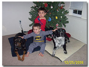 Lucky Second Chance dog, Gus (on the right) celebrates his